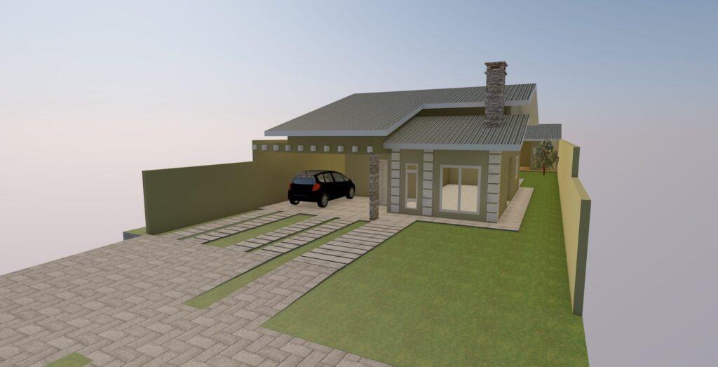 A construção também prevê edícula com churrasqueira, proporcionando um ótimo espaço de lazer.