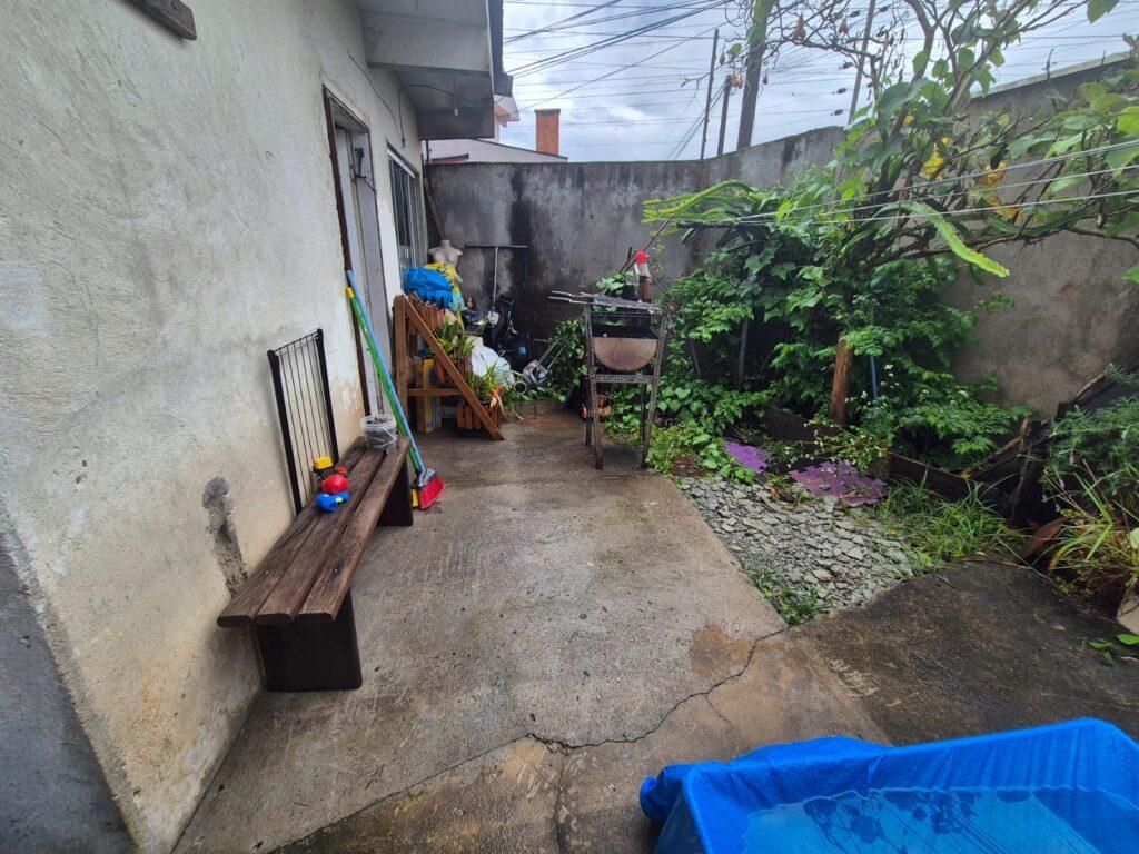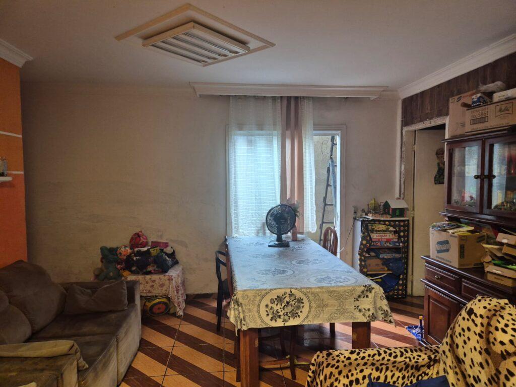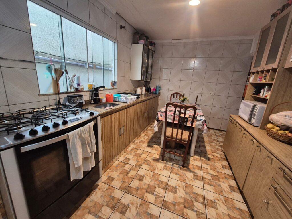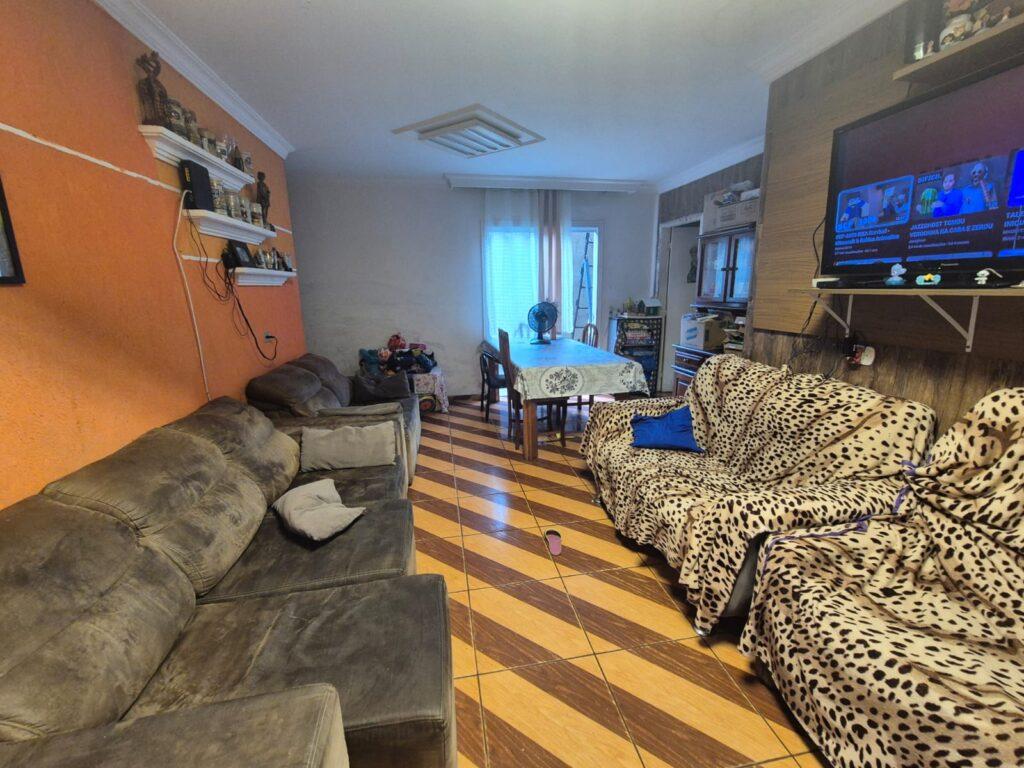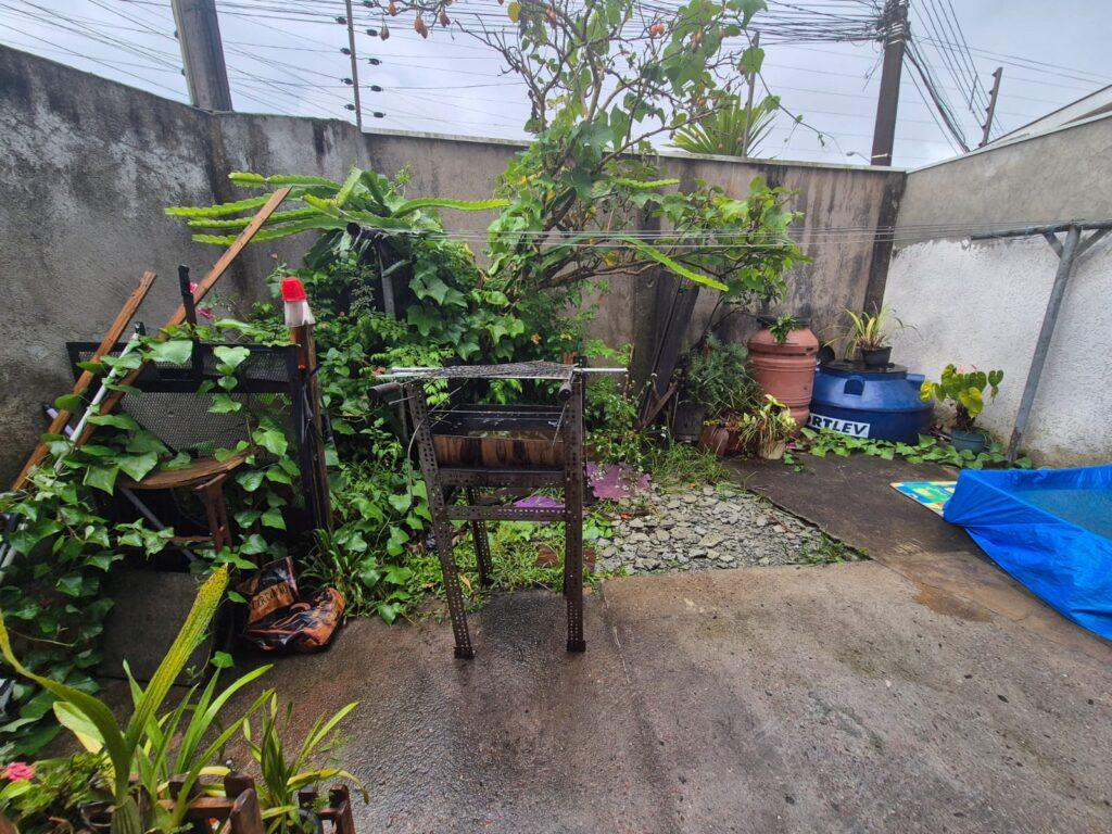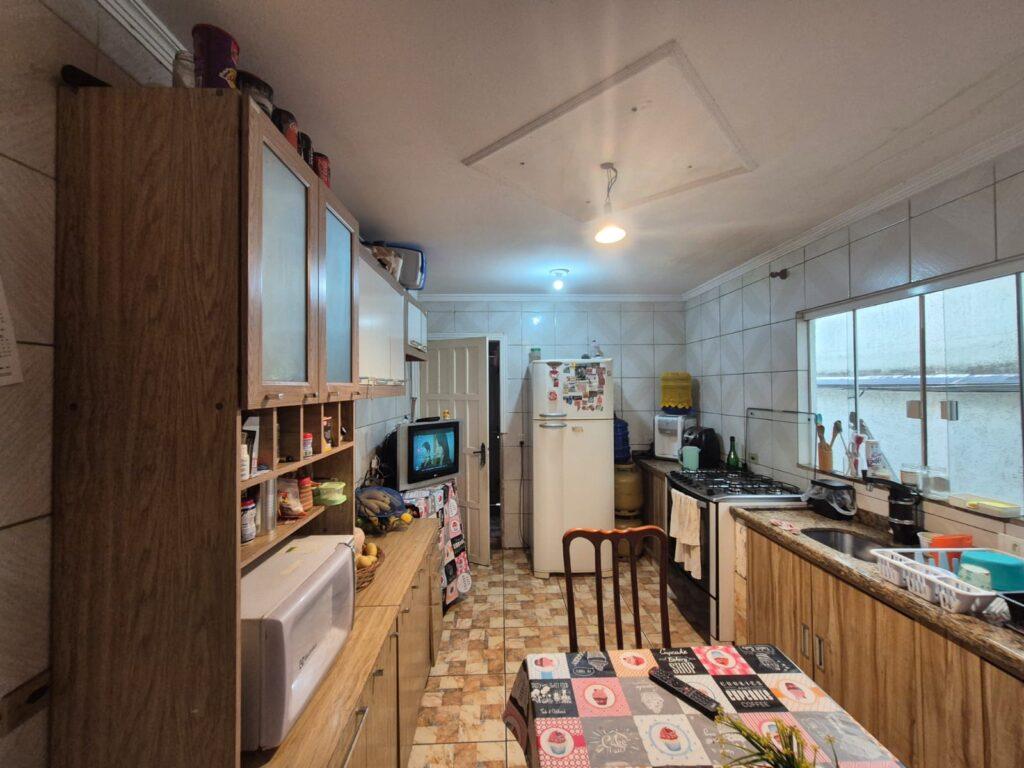 Conta com garagem para 2 veículos, sala de estar e jantar, cozinha, área de serviço e churrasqueira.