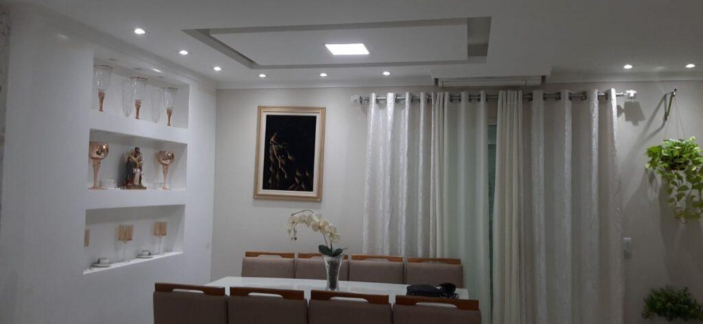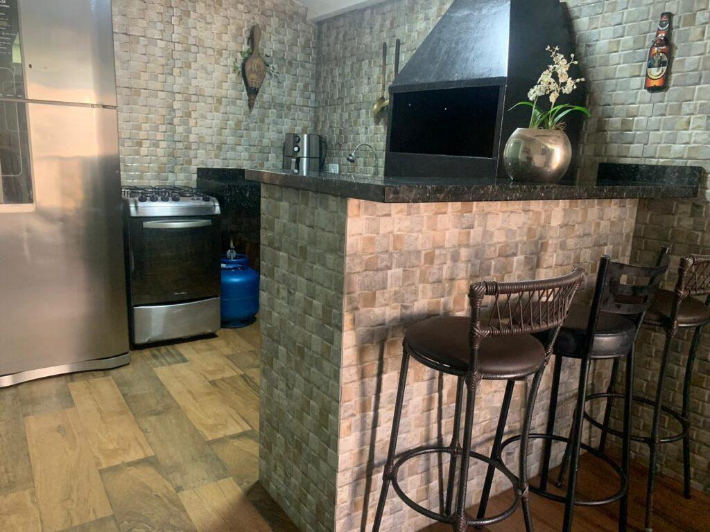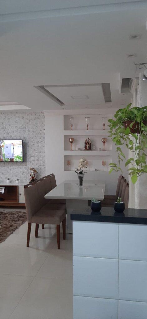 O imóvel conta com garagem para 2 veículos, cozinha com móveis planejados e fogão cooktop, sala de jantar e estar com painel de TV, lavabo, área de serviço coberta e churrasqueira.